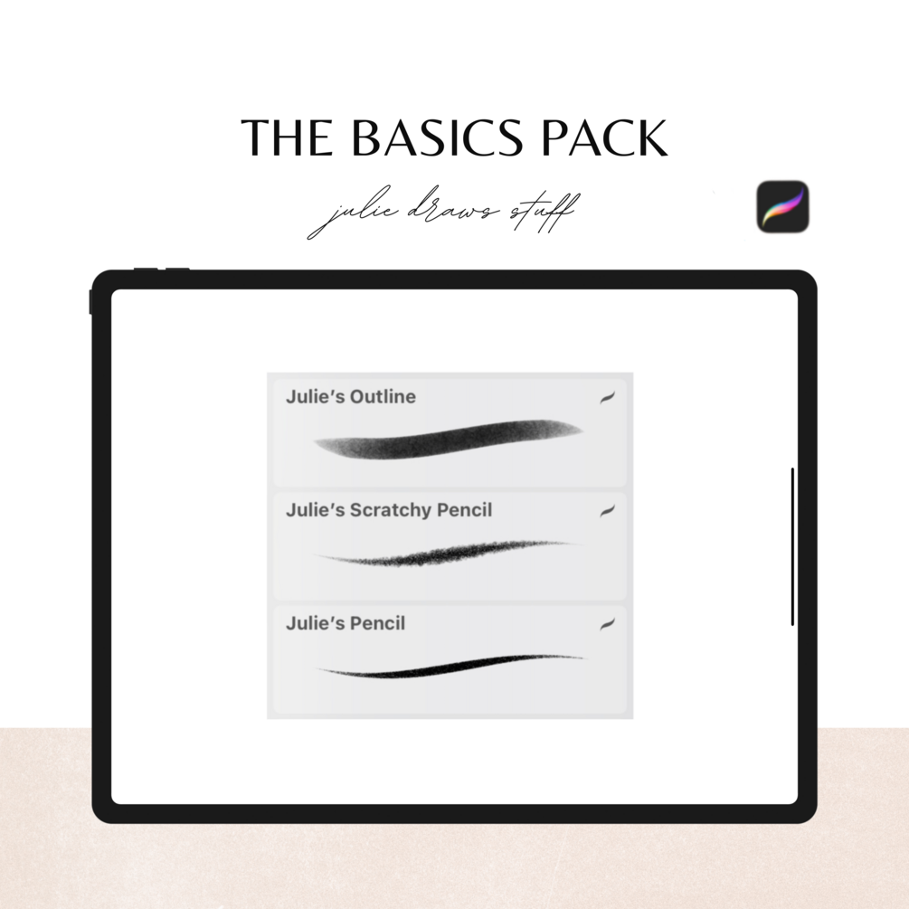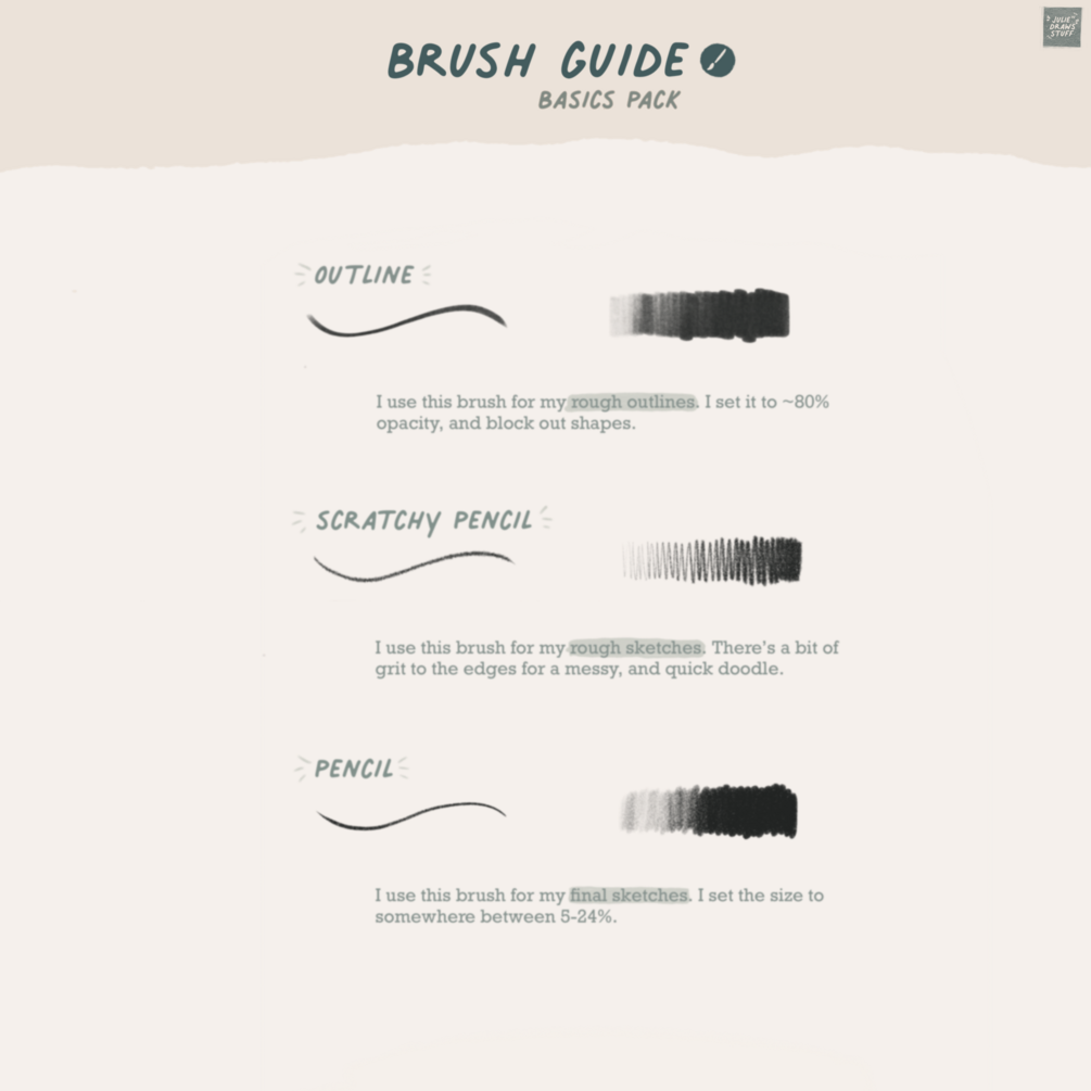 The BASICS brush pack comes with: 3 brushes + PDF guide.